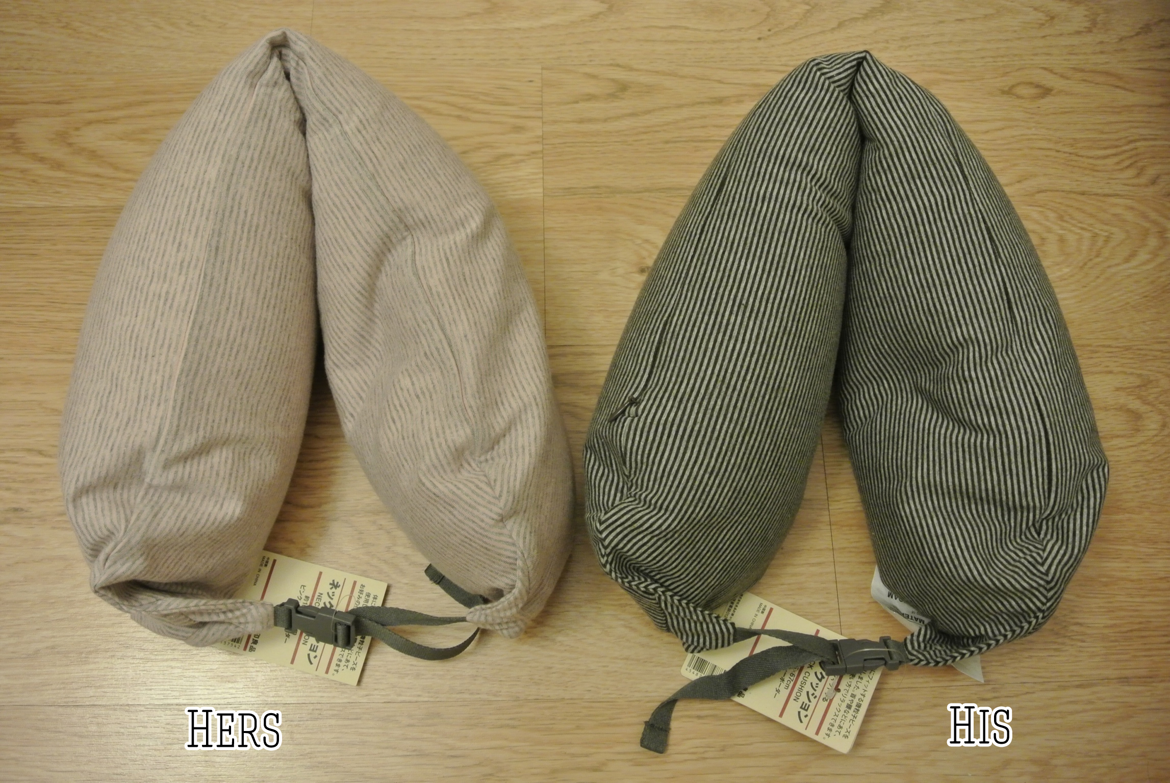 1. His & Hers travel neck pillows: This is the first time we will be using neck pillows on our fight. It’s a curious thing why we haven’t used them before, since we tend to travel overseas often, but we are using them now, so… & these neck pillows are very versatile. The strap is adjustable & this neck pillow also does triple duty: 1. a neck rest (obviously), 2. a waist pillow for lower back support, & 3. a foot rest when you open it horizontally. The cover can be removed & machine washed. I got a pink & grey striped one for myself & a charcoal & grey striped one for my husband.