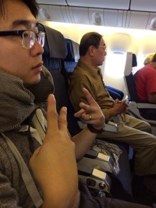 We got lucky. The flight wasn’t so full, so the seat next to us was empty. We almost had the whole row to ourselves!