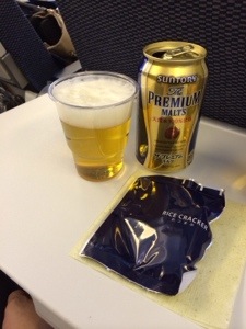 Every time we fly to Tokyo my husband has a tradition of ordering beer on the flight. He usually orders Suntory brand, but this time he drank all 3 brands (Suntory, Kirin & Asahi).
