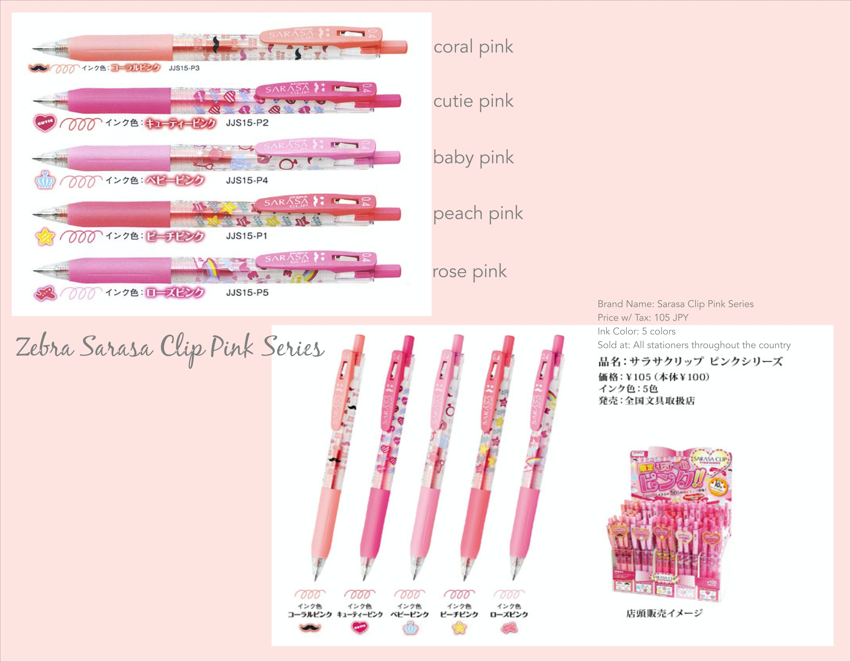 I also picked up one pink pen from the limited edition Pink Series. There are a total of 5 various ‘pink’ colors in this series. I only chose the coral pink “mustache” color.