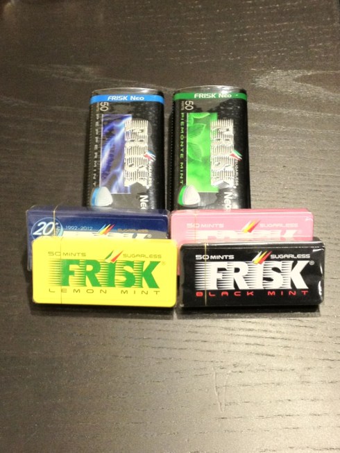 3. Frisk mints – New breath-freshening sugar free mints – In a premium re-closeable box -Each box contains 50 mints