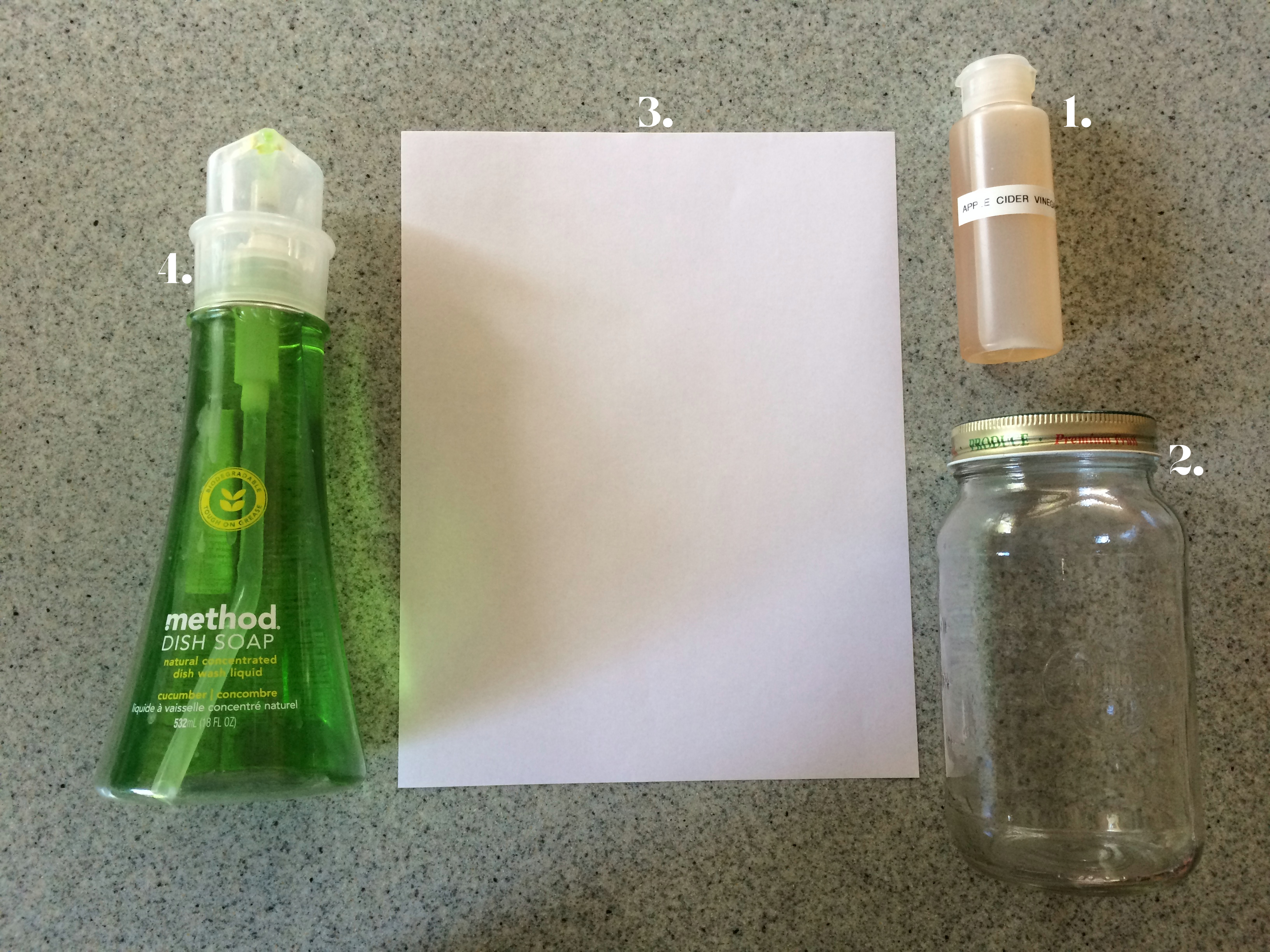 - Pour a small amount of apple cider vinegar into the bottom of the jar/cup, just enough to cover the bottom