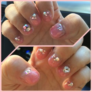 Aside from all of my personal health matters, there have been frequent family events that have kept my schedule very full. I’m not a girly dresser, but I got all dolled up for my cousin’s semi-formal bridal shower party. I even got a fancy manicure, just a little treat for myself. I got my manicure at a Japanese nail salon that I go to every once in a blue moon. This is the design I picked. It’s a pink & glitter gradient nail color with various-sized gemstones on each nail. I love going to this particular salon because they are so creative, talented, & they do an excellent job as well as provide friendly service. This manicure lasted over three weeks & did not chip or get in the way of my everyday activities. The gems were also affixed so securely that I even had a difficult time removing them when my manicure finally decided to expire & give up on me.