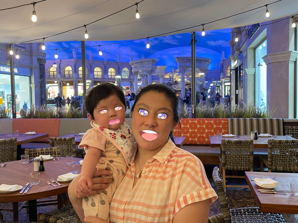 On the next day we ventured back out to the Strip again, to see the famous seasonal flower display at the lobby of the Bellagio hotel. Every season or major holiday, the lobby garden at the Bellagio hotel changes into something dramatic & spectacular. This time the theme was a tropical paradise along with a giant replica of a treehouse (with furniture inside), & a massive feature display depicting Mother Nature as a huge flowering tree. I wish I had photos to show you, but there were just way, way, way too many tourists crowding the whole area, & since we were trying to be very vigilant about possible COVID-19 super-spreader events, we decided to take a quick walkthrough then go to our next spot. Jian had the brilliant idea of taking the 3 of us back to our old stomping grounds for good eats & eat at our favorite Japanese-themed restaurant for some delicious (yet Vegas overpriced) ramen. This was when our little bean decided to showcase her best behavior & let the parents have a leisurely lunch with a few delicious cocktails sprinkled in between.