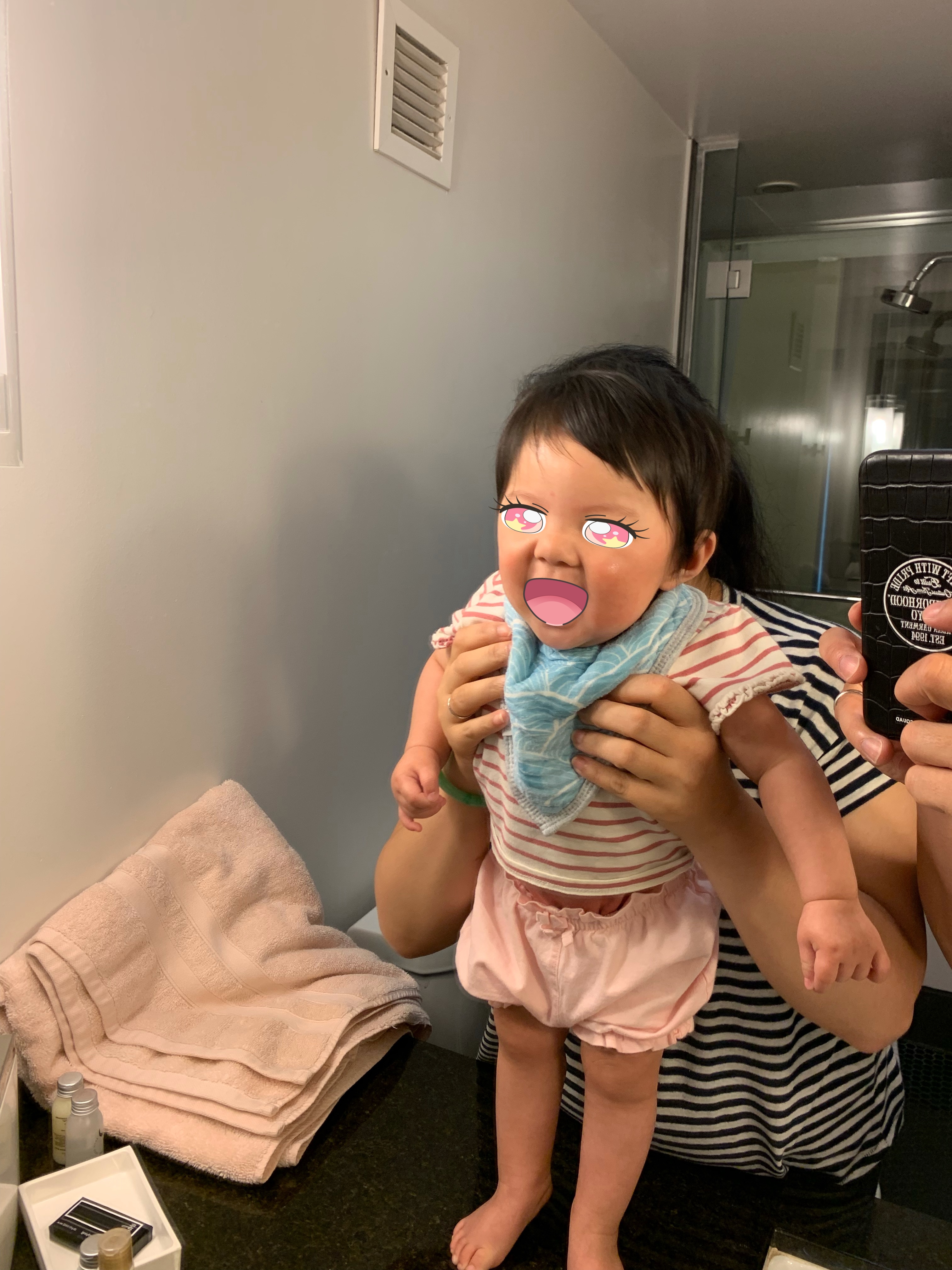 Towards the end of our trip Jian & I decided to do the cheesy, clichéd touristy thing & bring our little bean to see the infamous Las Vegas Strip. There was not much for us to do in this melt-your-face-off hot weather but to stay inside the shopping malls & get lost in the maze of hotel casinos. So, we only ended up taking our little bean to a few selected places on the Las Vegas strip. Our little bean got to experience her first tour to an aquarium when we visited the Shark Reef Aquarium at the Mandalay Bay hotel. She was relatively okay when we were looking at all of the lizards & snakes at the beginning of the tour, but once we descended lower where all of the exotic fishes & sea animals swam around, our little one wasn’t too happy to be in such a dark place. It wasn’t long before she started fussing, which was our cue to high tail it out of there & head to our next spot. It was too hot to do anything outside (even walking between hotels was not a good idea). So we browsed around the Caesar’s Palace Forums shopping mall before heading home to change our little bean’s giant 💩 diaper.