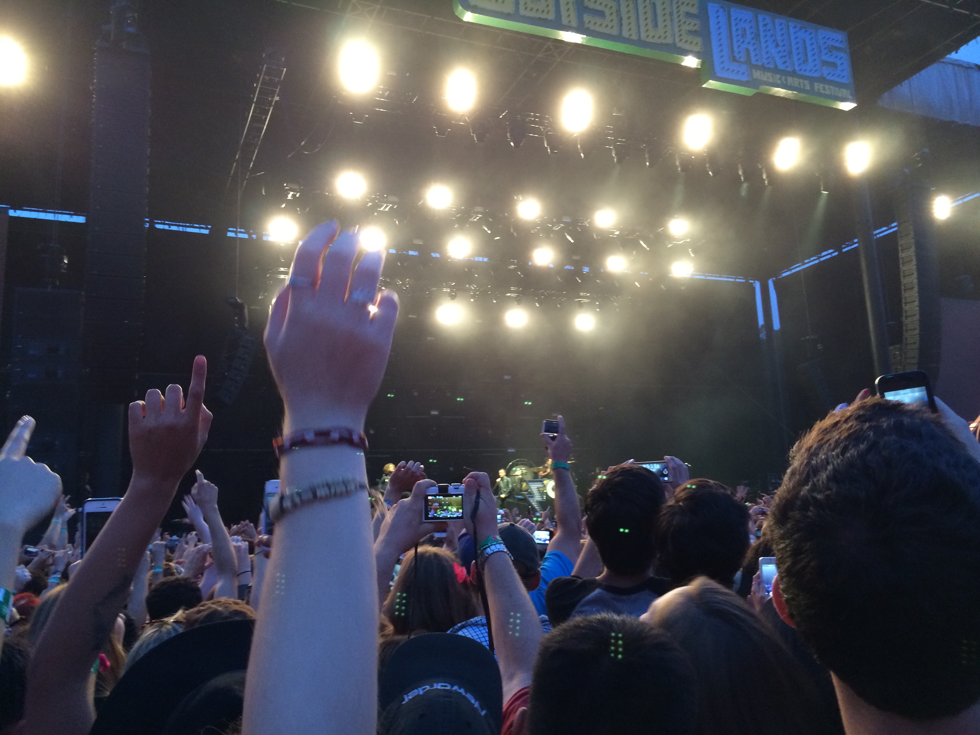 The Killers played all of their hit songs & then some, really amping up the crowd between the lighting choreography changes. I don’t think I have ever sang along or screamed so loud at a concert in my life (except at the Save Ferris concert back in 1998). It was a good thing I had a drink with me the whole time, otherwise I would’ve lost my voice by the end of the night. I have to admit, the greatest moments of The Killers’ set (& there were 2 separate moments) were when they performed two cover songs in between playing their own hits. They first performed a cover of Credence Clearwater Revival‘s song “Bad Moon Rising” (a nod to a classic Bay Area band). Then later on, they performed a slightly altered cover of Otis Redding‘s song “Sitting on the Dock of the Bay” (which is a song about San Francisco). They changed the lyrics “…home in Georgia” to “…home in Las Vegas” and the lyrics “…heading to the ‘Frisco Bay” to “…heading to Outside Lands“. Those two moments really stood out in my memory. The Vegas boys started their set with the oh-so-popular “Mr. Brightside” & ended on a roaring bang with “When You Were Young”. In between were a sprinkling of Hot Fuss, Sam’s Town, Day & Age, & Battle Born top hits. I kind of wish they had played their newest singles “Miss Atomic Bomb” and “Just Another Girl”, but I was still happy they performed almost all of my all-time favorite songs. By the end of their set, I was grinning from ear-to-ear.
